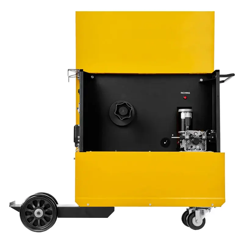 Инверторный сварочный полуавтомат позволяет производить сварку под защитой газа или без него. На главной панели расположены регуляторы управления сварочным током, напряжением, индуктивностью и скоростью подачи проволоки. Настраиваемая индуктивность позволяет подобрать оптимальные параметры дуги под конкретный материал, что обеспечивает ровные и аккуратные сварные швы.