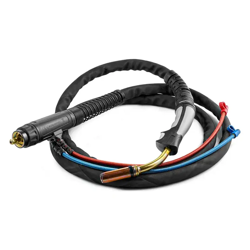 Устройство работает от трехфазной сети и состоит из трех частей: источника сварочного тока, выносного подающего устройства и блока жидкостного охлаждения. Оборудование поддерживает синергетические функции управления, которые обеспечивают автоматическую настройку при вводе минимального количества параметров. Сварщику достаточно указать толщину материала и диаметр проволоки или электрода. Аппарат самостоятельно рассчитает и установит все остальные рабочие параметры: скорость подачи, ток, напряжение, частоту. Цифровой дисплей и сенсорные кнопки обеспечивают удобство эксплуатации. Наиболее часто используемые программы сварки можно сохранить в памяти сварочного аппарата ПТК RILON MIG 500 DP TITAN для последующего быстрого выбора настроек.