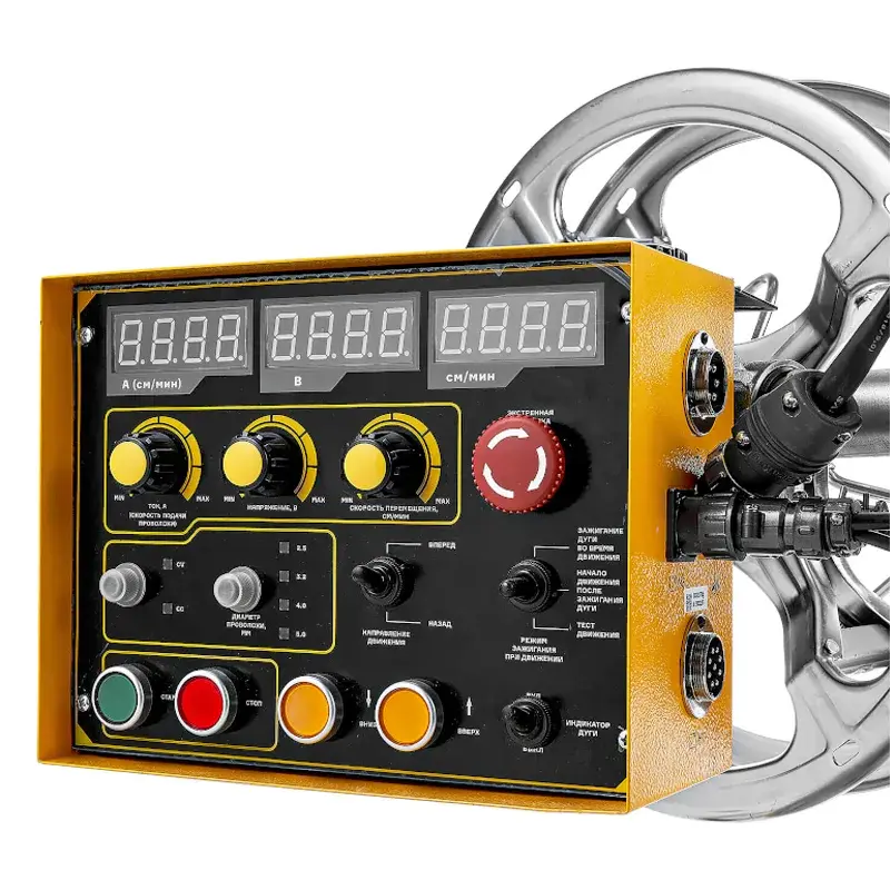 - Наличие функций старта сварки «Протяжкой» — зажигание дуги во время движения и старта сварки «Касанием» — начало движения после зажигания дуги.