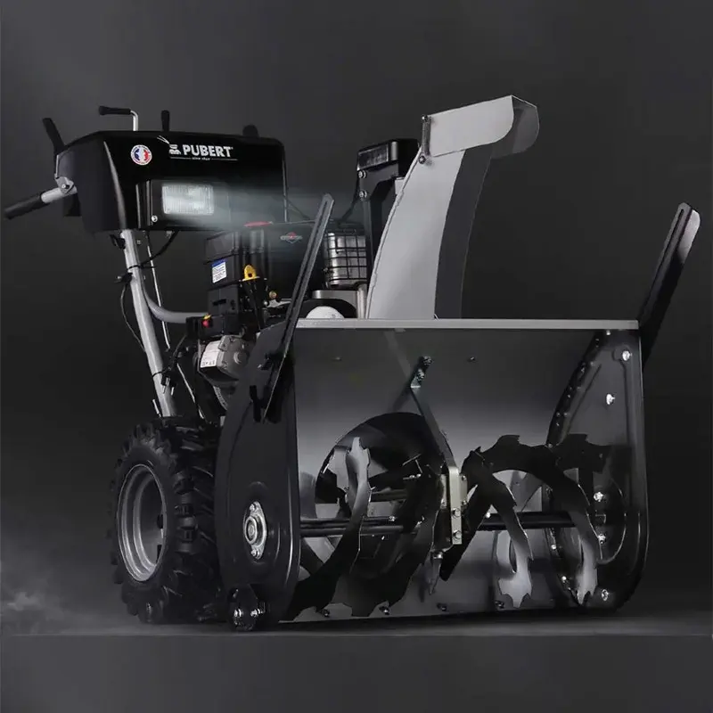 Помимо всех этих новшеств, снегоуборщик Пуберт оснащен стальным шнеком с зубцами, выдвижными боковыми ножами, галогеновой фарой, 6 передачами вперед и 2 назад. Дефлектор выброса контролируется с помощь дистанционного управления. Для улучшения маневренности снегоуборщика были разработаны пневмоколеса 16” с агрессивным протектором и функция разблокировки колес.