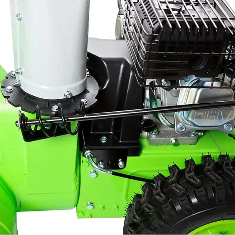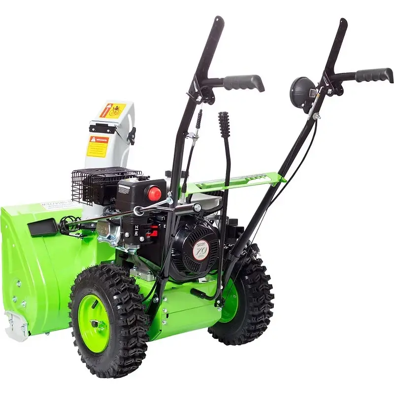 Снегоуборщик оснащен колесами с глубоким протектором, они упрощают перемещение и предотвращают пробуксовку на обледенелых участках.