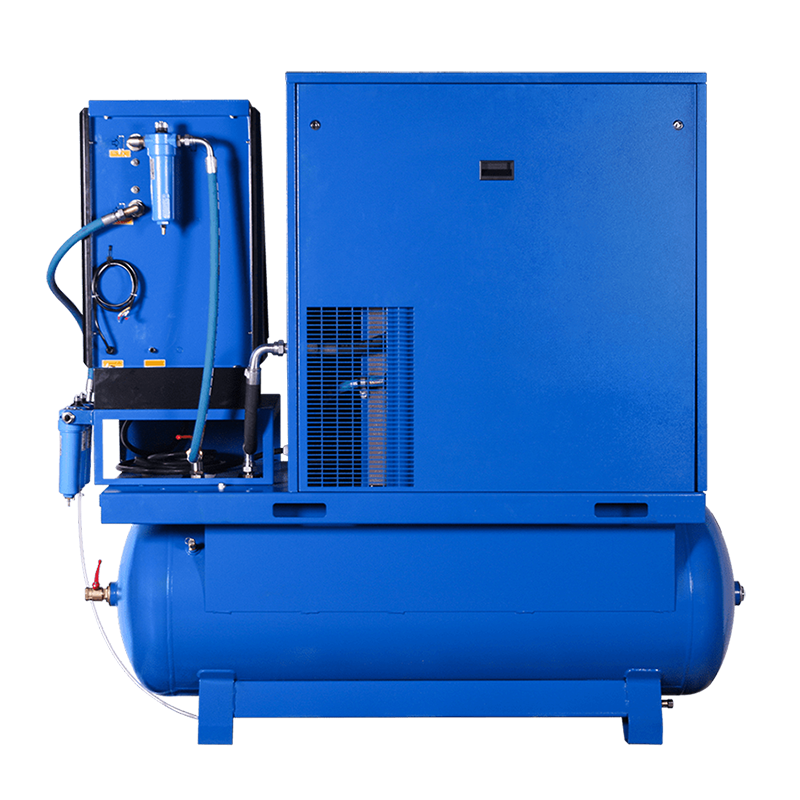 Базовое исполнение на усиленной раме с защитным кожухом и качественной звукоизоляцией. Основные технические компоненты надежно скрыты под прочными металлическими панелями. Благодаря компактным размерам и низкому уровню шумовой нагрузки (до 71 – 75 дБ), компрессор подходит для монтажа в ограниченном пространстве и непосредственно на рабочих местах персонала.
