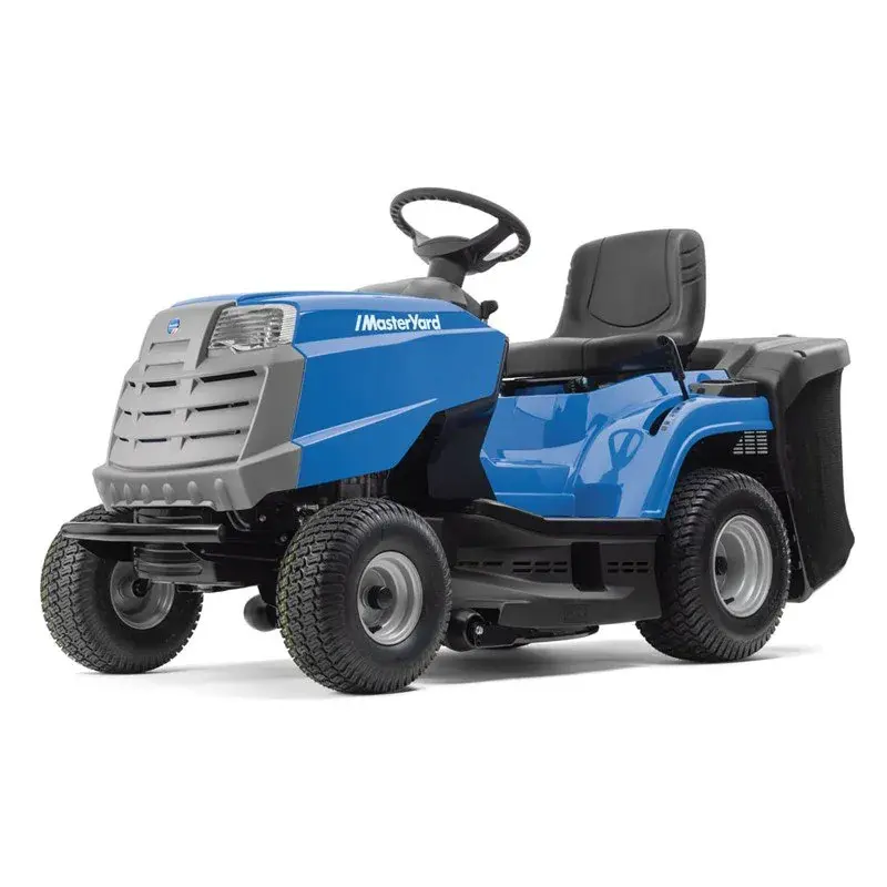 Садовый трактор – газонокосилка MasterYard ES1233H с гидростатической трансмиссией является моделью для средних площадей (порядка 3000 кв.м.). Он оснащен большим травосборником и позволяет выполнять стрижку травы со сбором или мульчированием (опция, приобретается отдельно).