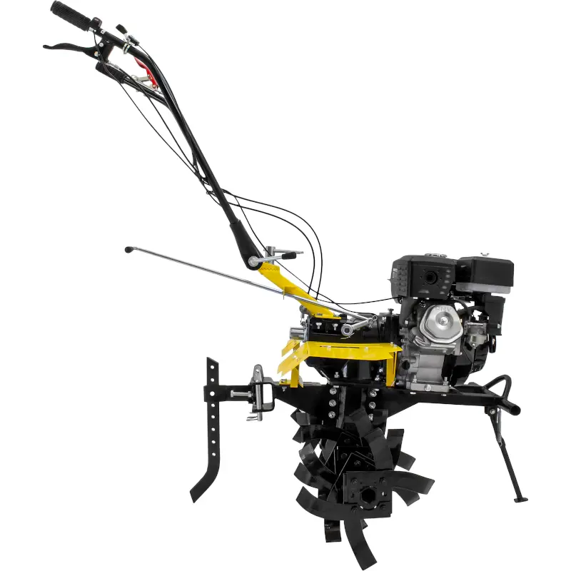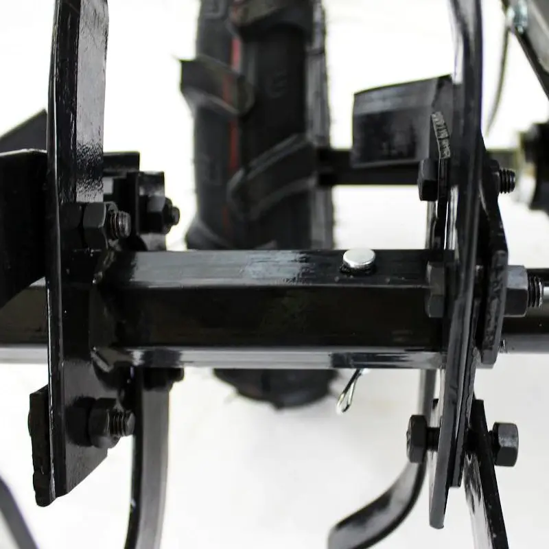 Руль сельскохозяйственной машины Huter MK-11000P можно регулировать в 2-х положениях: по высоте и по плоскости. Это позволит подобрать оптимальные настройки под ваш рост и под конкретную задачу. Например, когда требуется не наступать на только что обработанную землю.
