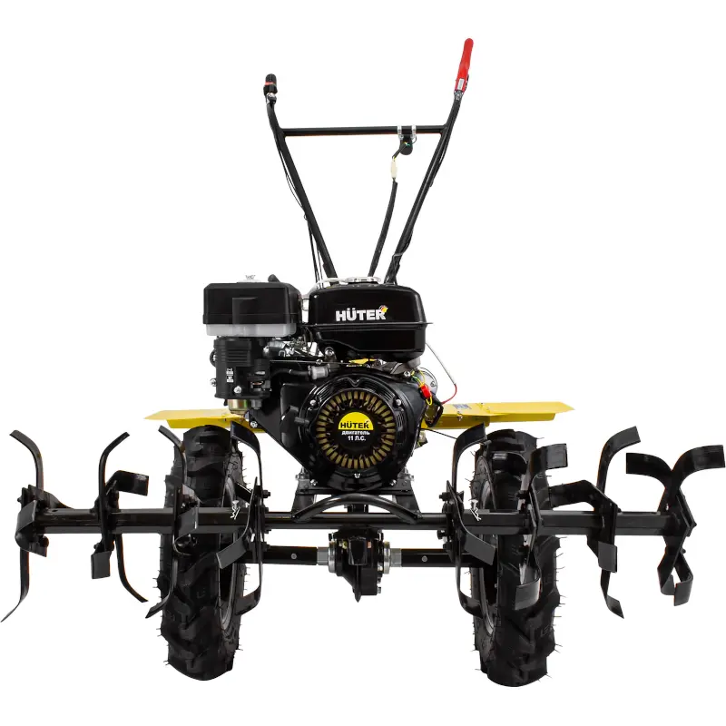 - Бензиновый 4-тактный двигатель мощностью 11 л. с. позволяет перепахивать тяжёлую влажную почву и целину.