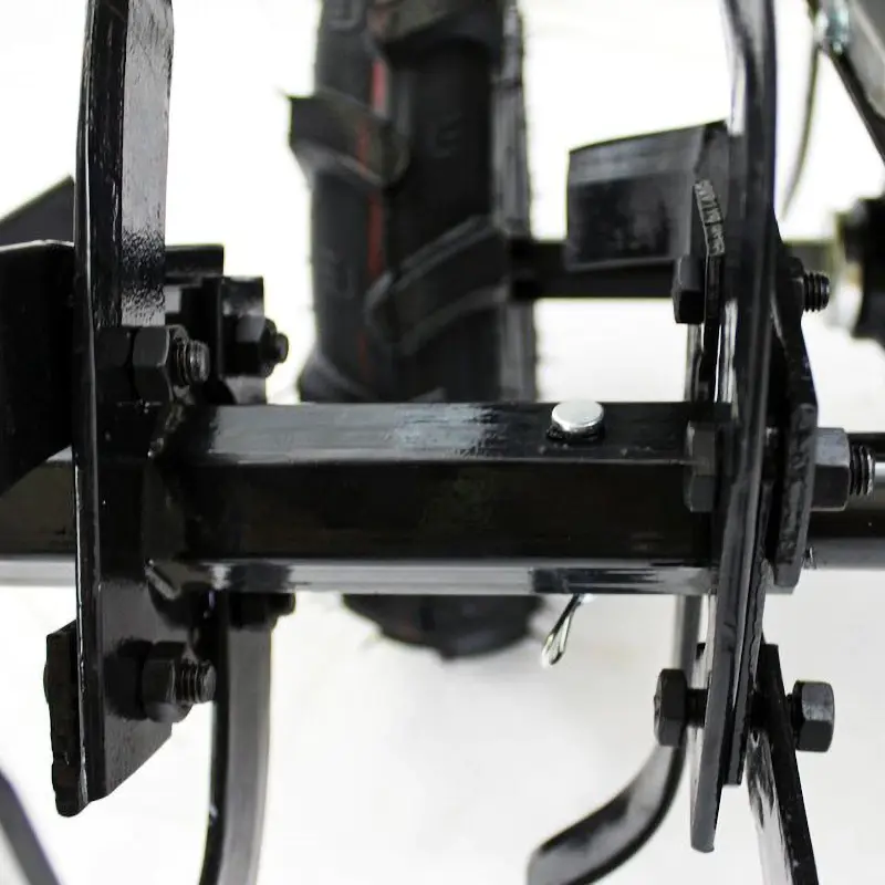 При установке навесного оборудования функции машины увеличиваются, например вы можете использовать ее как газонокосилку, плуг или окучник. Для передвижения инструмента по различным видам почвы и сложному рельефу предусмотрено несколько скоростей, в том числе обратных ход, который помогает достать застрявший культиватор.