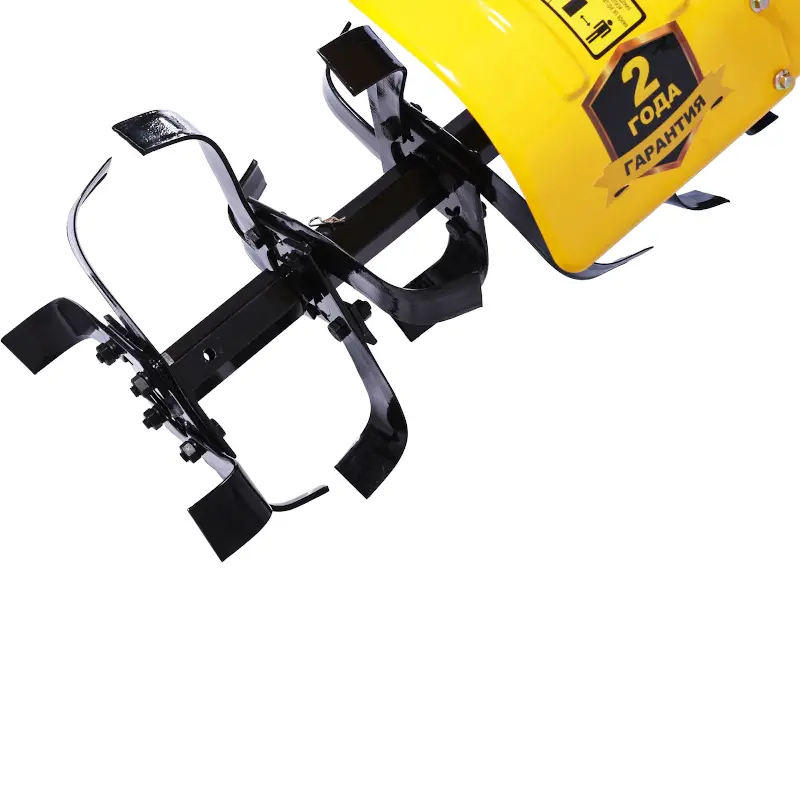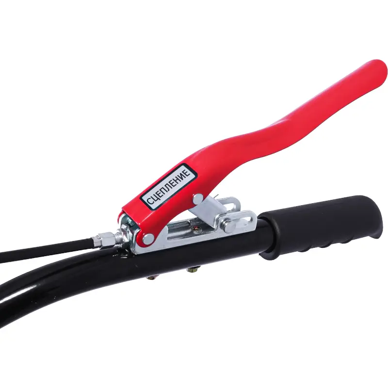 Корпус мотоблока оборудован колесной парой. Это обеспечивает удобство и отсутствие лишней нагрузки при перемещении машины по участку. Элементы управления вынесены на рукоятки для удобства управления.