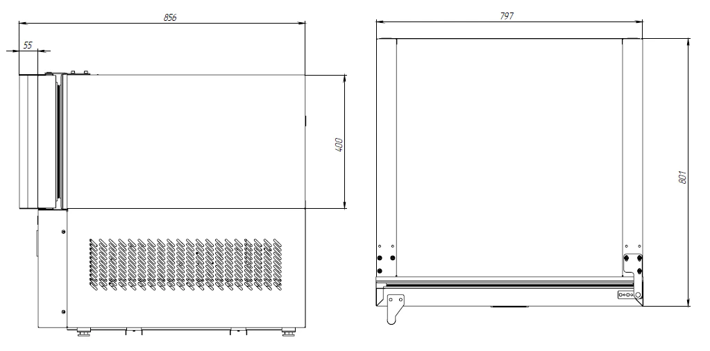 Рассчитан на размещения 3 гастроемкостей GN1/1 или 3 противней EN40х60.