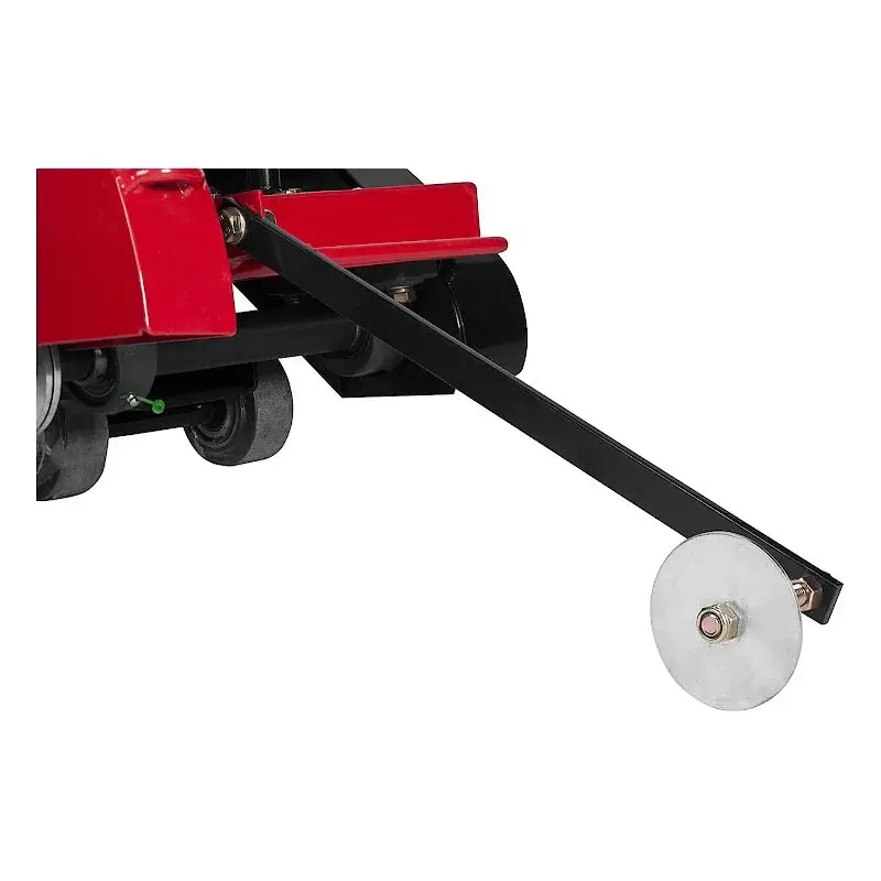 Перед режущим диском находится откидная штанга, на которой закреплено маленькое металлическое колесо. Деталь используется для точного движения по заданному направлению.