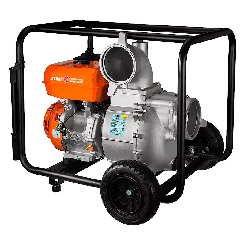 Мотопомпа для чистой воды СКАТ МПБ-2500 предназначена для перекачивания жидкостей, в которых содержатся частицы песка, листьев и других примесей размером до 16 мм.