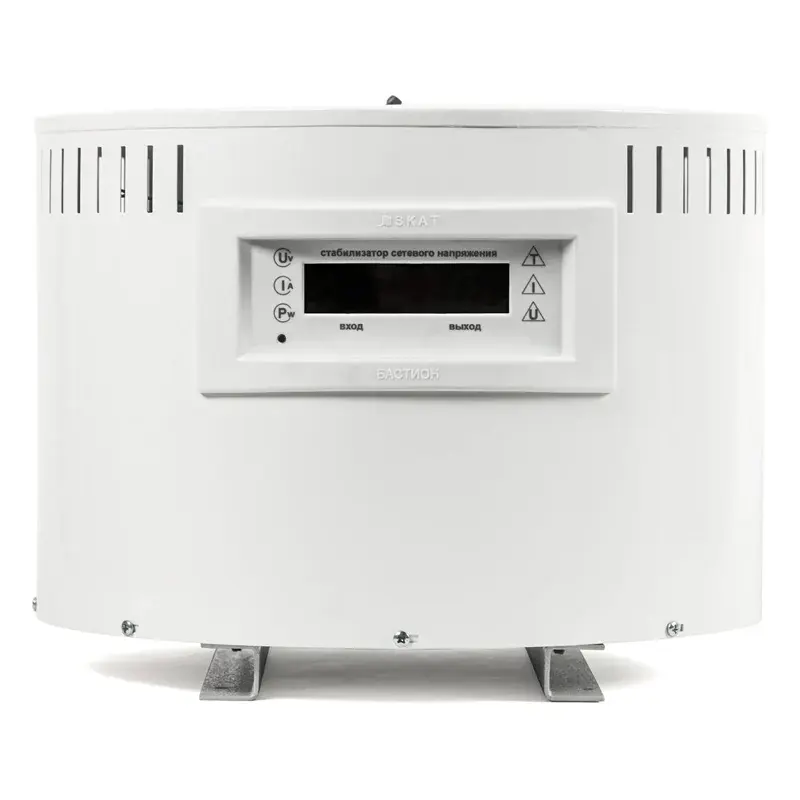 Стабилизатор напряжения SKAT STP 10000 с шестнадцатью ступенями регулировки и максимальной мощностью нагрузки до 10 кВа работает с высокой точностью в 3,5 %. В основе устройства тороидальный трансформатор и микропроцессор с алгоритмом «мягкого переключения» и функцией самодиагностики.