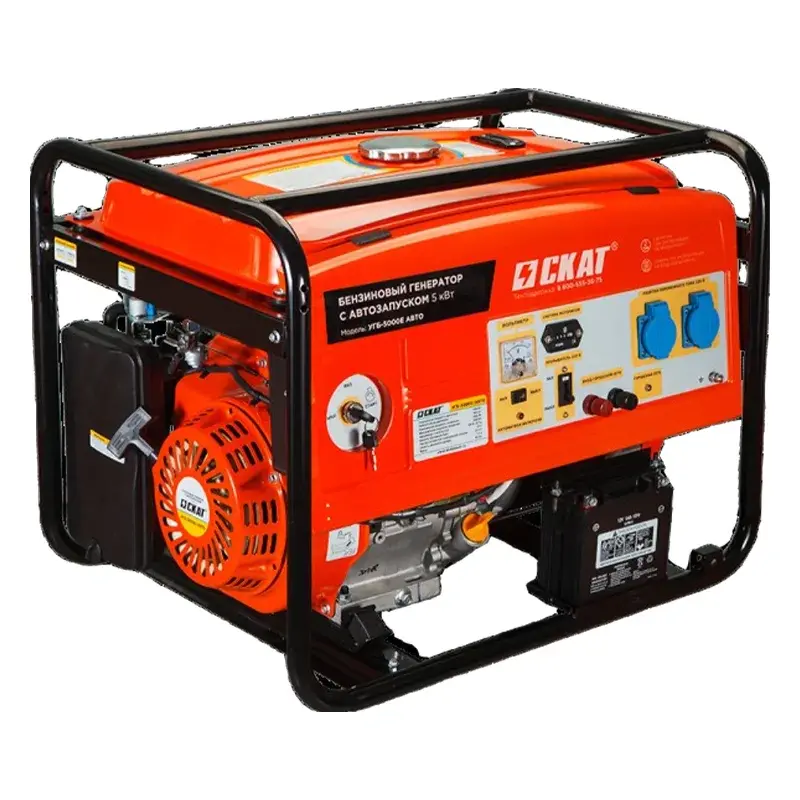 Бензиновый генератор СКАТ УГБ-5000Е/АВТО мощностью 5 кВт представляет собой мобильное оборудование как для бытового, так и для профессионального использования. Служит источником питания различных приборов, когда нет возможности подключится к электросети.