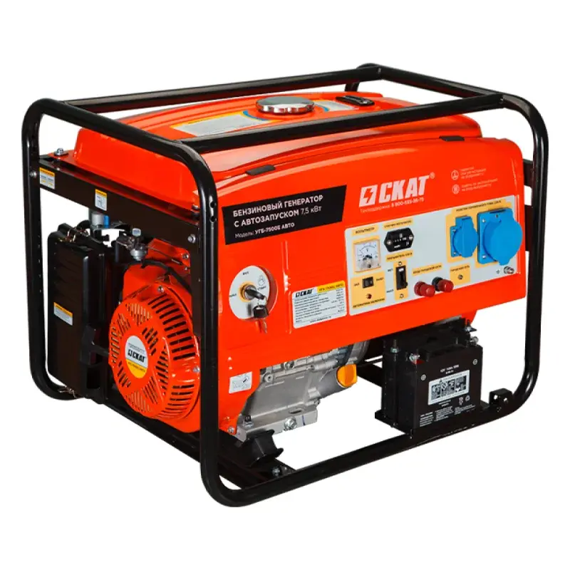 Бензиновый генератор СКАТ УГБ-7500Е/АВТО мощностью 7,5 кВт представляет собой мобильное оборудование как для бытового, так и для профессионального использования. Служит источником питания различных приборов, когда нет возможности подключится к электросети.