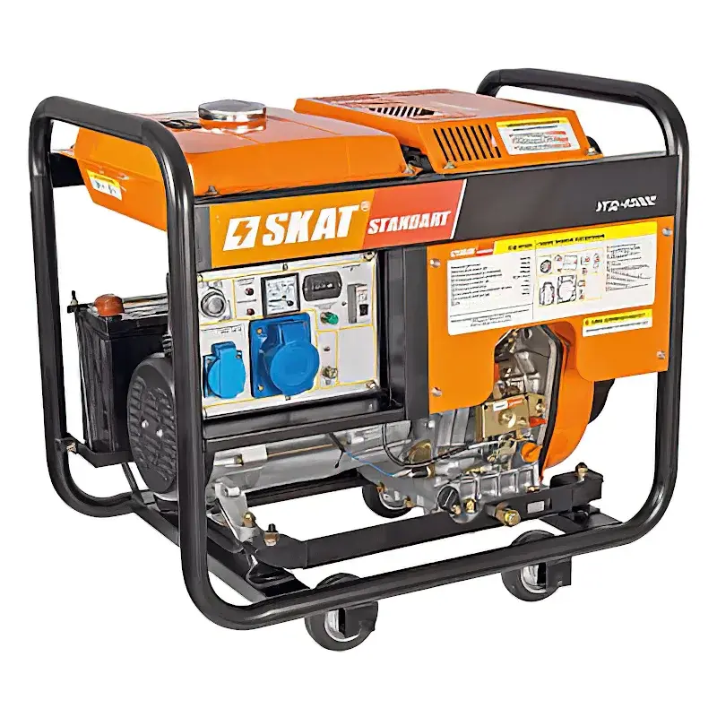 Дизельный генератор СКАТ УГД-4500Е мощностью 4,5 кВт обеспечит энергией автосервис, автомойку или строительную площадку и станет отличным помощником горнопромышленникам, лесозаготовителям, ремонтным бригадам.