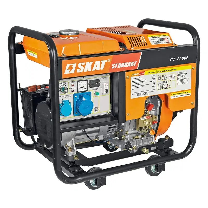 Дизельный генератор СКАТ УГД-6000Е мощностью 6 кВт обеспечит энергией дачу, коттедж, строительную площадку или торговую точку и станет отличным помощником лесозаготовителям и ремонтным бригадам.