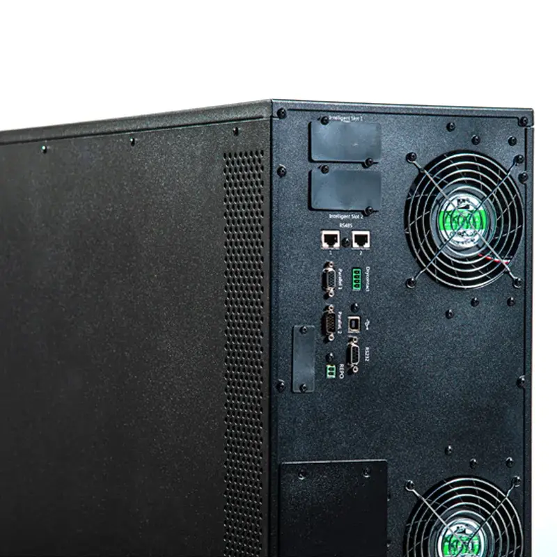 Источник обеспечивает безопасную и надёжную защиту оборудования от некачественной электросети, питая подключённые к его выходу устройства стабилизированным трёхфазным напряжением. При отсутствии напряжения сети ИБП использует электроэнергию, запасённую в аккумуляторных батареях.