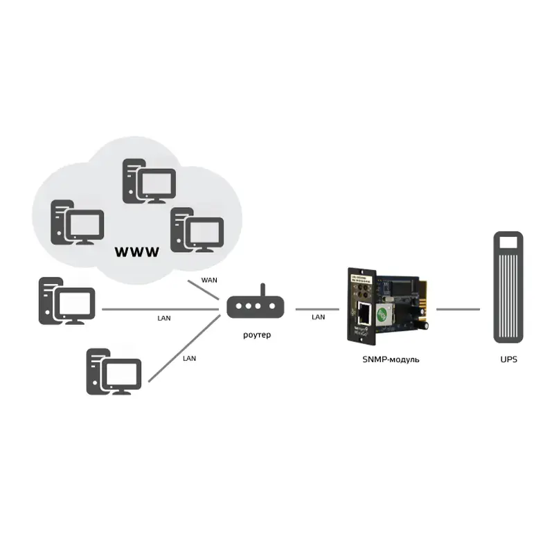 Комплекс бесперебойного питания SKAT UPS 3000 SNMP включает 19-дюймовый телекоммуникационный шкаф, ИБП, модуль SNMP, комплект ключей, перемычки и пылезащитные кожухи для аккумуляторных батарей. Система с установленными АКБ обеспечивает стабильное питание и бесперебойную работу компьютерного оборудования. Рекомендуется использовать шесть 12-вольтовых АКБ емкостью 120 Ач. ИБП подключается к сети с входным напряжением 160–290 В для функционирования в основном режиме и подзарядки аккумуляторов. Выходная мощность составляет 3000 ВА.