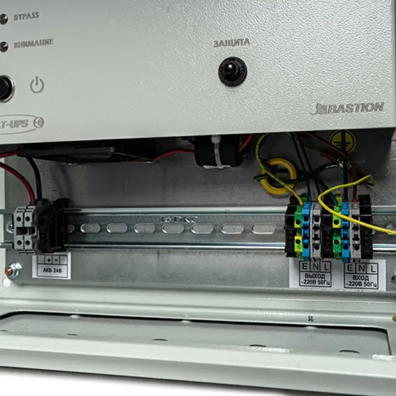 «Основной» используется при наличии напряжения питающей сети в пределах допустимого диапазона. В этом режиме источник бесперебойного питания SKAT-V.220AC-800VA исп.5 выполняет функцию стабилизатора и заряжает собственный АКБ. Переход на режим «Резерв» происходит автоматически при отключении питающей электросети, а также повышении напряжения до 295 В или понижении до 155 В. Продолжительность работы в этом режиме зависит от емкости АКБ. Режим BYPASS включается при перегрузке. Устройство гарантирует высокоточную стабилизацию как в основном, так и в резервном режиме.