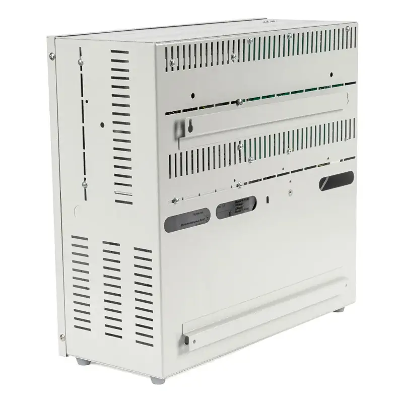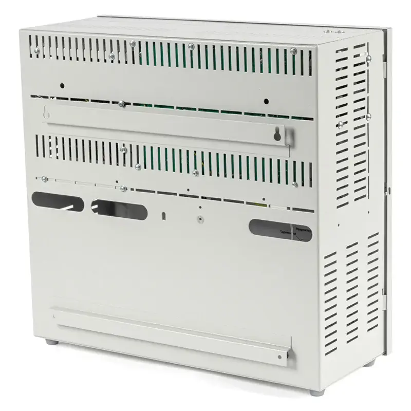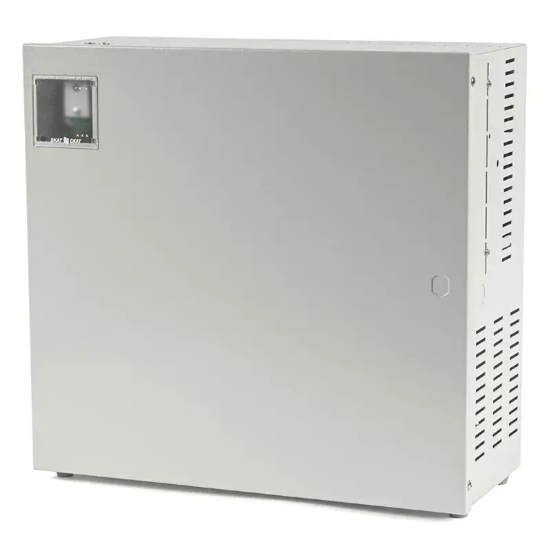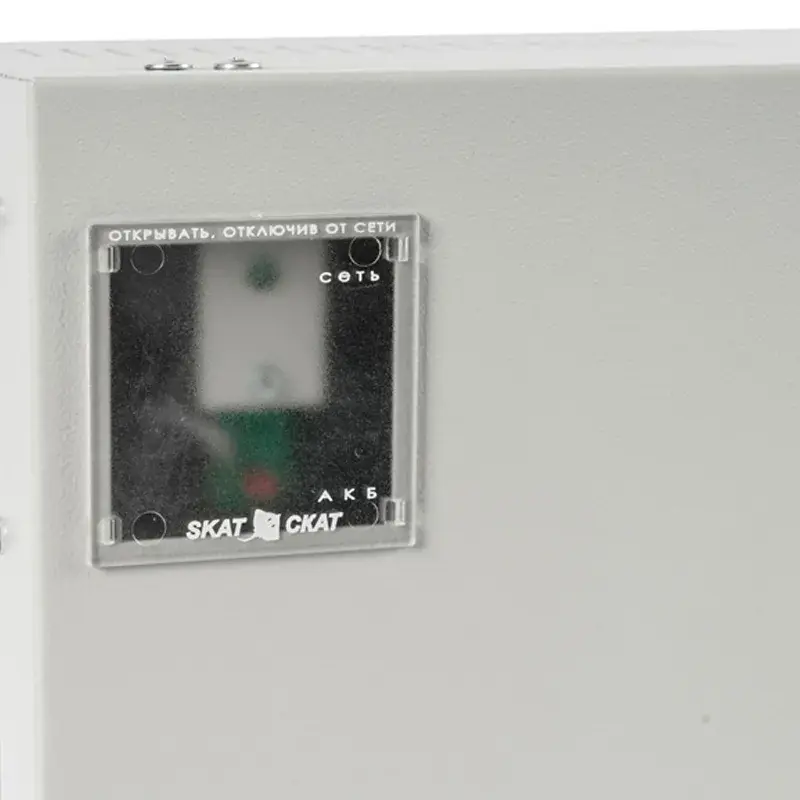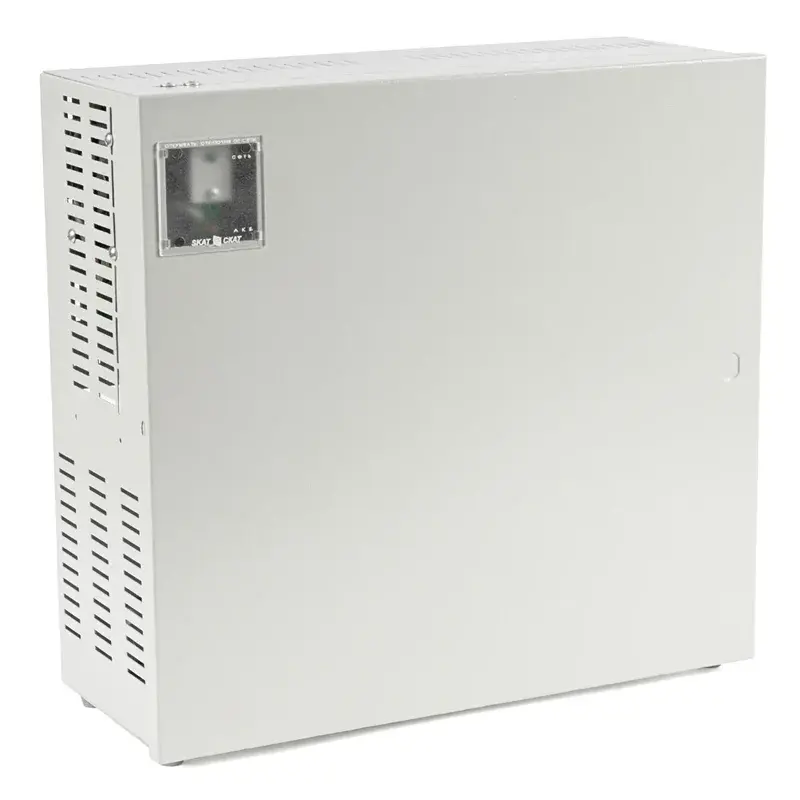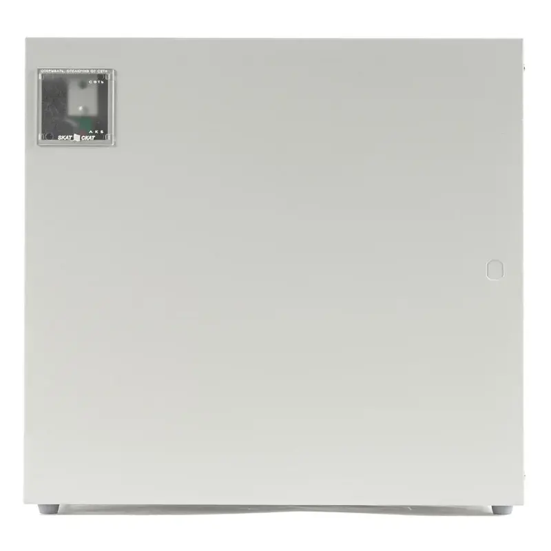 Источник питания SKAT-V.32 предназначен для обеспечения питанием до 32 выходов видеокамер и других потребителей с номинальным напряжением 12 В при работе от сети переменного тока 220 В и в резервном режиме от аккумуляторной батареи 24 В. Системы электронной защиты от перегрева, перегрузки, короткого замыкания, неправильного подключения клемм и глубокой разрядки АКБ обеспечивают стабильное автоматическое функционирование устройства. ИБП рассчитан на работу в температурном диапазоне от 0 до +40 °С.
