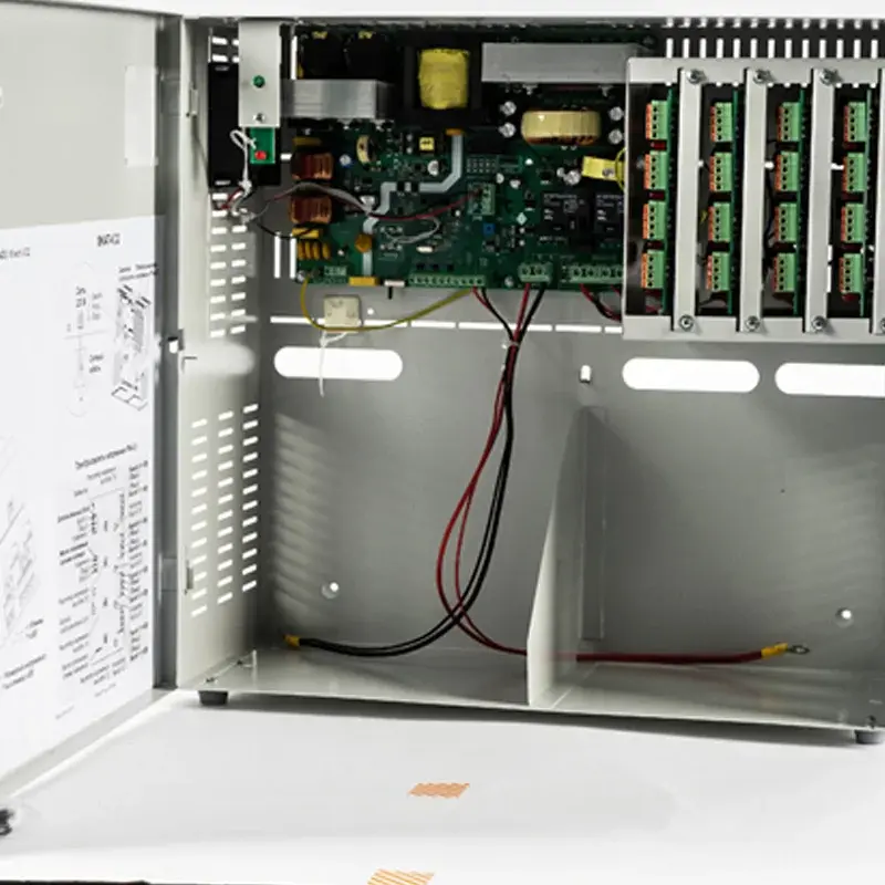 В тридцатидвухканальном источнике предусмотрена возможность плавной регулировки напряжения и настройки тока потребления для каждой пары выходов. Благодаря наличию пяти выходов типа «открытый коллектор» можно подключить внешние цепи индикации для выдачи информационных сообщений и обеспечить управление внешними устройствами автоматики.