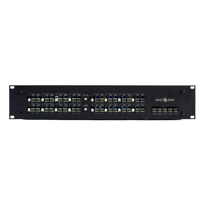 Источник бесперебойного питания SKAT V.32 RACK предназначен для обеспечения работы видеокамер, охранных и пожарных сигнализаций, телекоммуникационного и другого удаленного оборудования. Для подключения приборов предусмотрено 32 канала с независимой регулировкой напряжения.