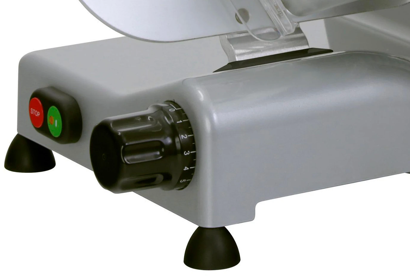 Наличие резиновых ножек в нижней части электрической ломтерезки препятствует вибрации и скольжению, что позволяет быстро и удобно нарезать колбасу, мясо, рыбу. Приборы модели ES 275 являются простыми в применении. Нарезаемые продукты закрепляются в лотке посредством прижимного элемента. Используя рукоятку и ручку толкателя, каретка непрерывно перемещается над острым лезвием вперёд-назад, при этом слайсер имеет плавный ход.