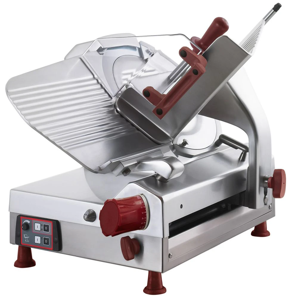 Компактный слайсер для профессионального использования на кухнях ресторанов или в супермаркетах.