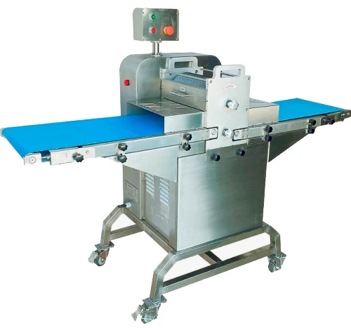 Слайсер конвейерный Roal Meat RM-1000 предназначен для нарезки мяса, птицы и рыбы разных пород на пресервы одинакового размера, также для нарезки кальмара на кольца.