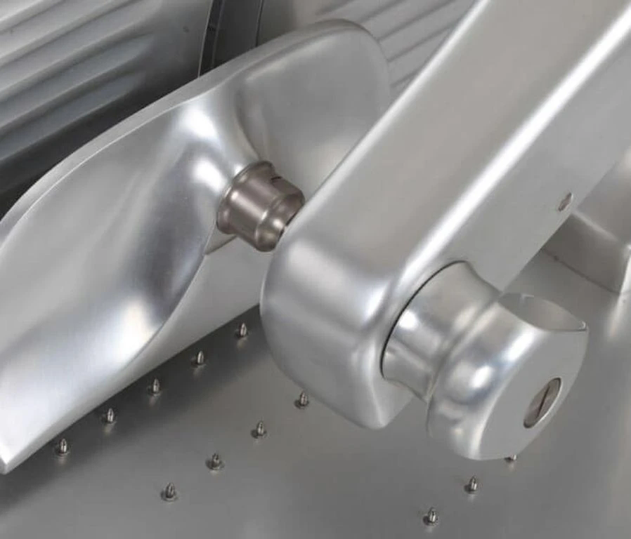 Крышка ножа и поддон для продуктов из литого алюминия, защищенного анодным оксидированием.