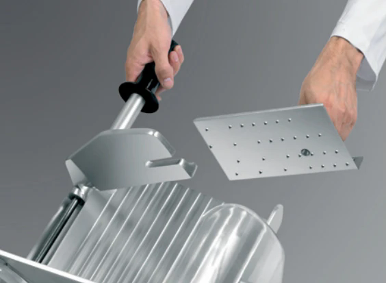 Слайсер Rheninghaus Mondial 350 с функцией охлаждения, уникальным дизайном, точной регулировкой толщины и гладким ходом каретки идеально подходит для эксплуатации в супермаркетах и кухнях больших ресторанов.