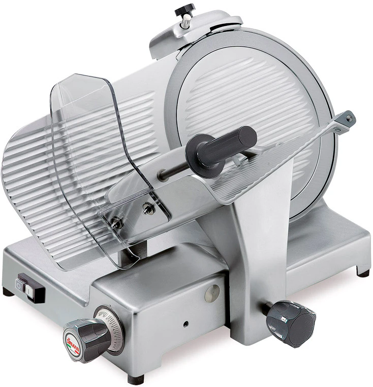 Слайсер Sirman Canova 300 используется в сфере общественного питания и торговли для нарезки мясных деликатесов (колбас, ветчин) и твердых сортов сыра.