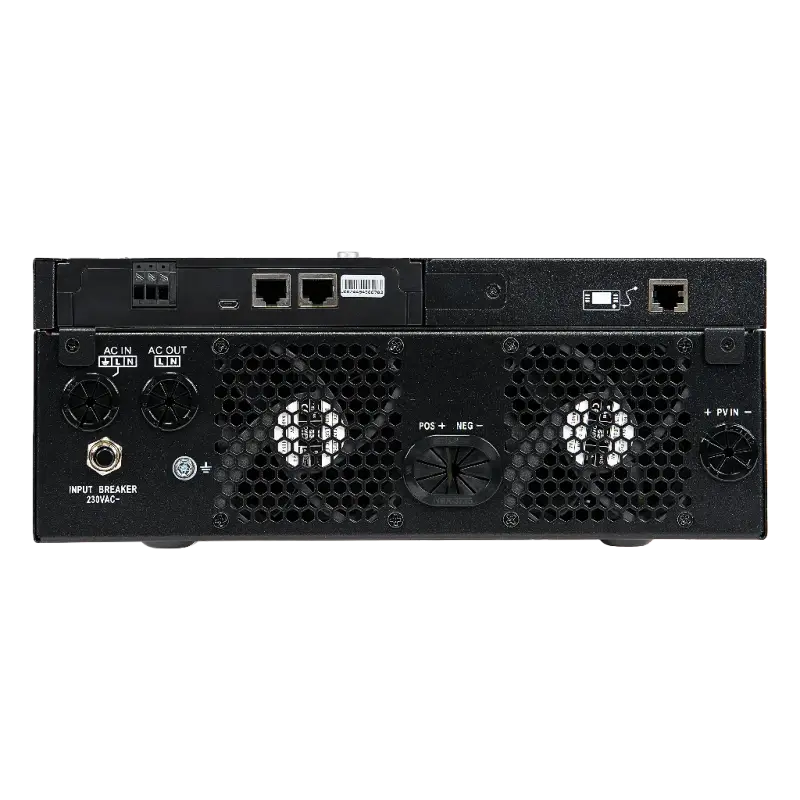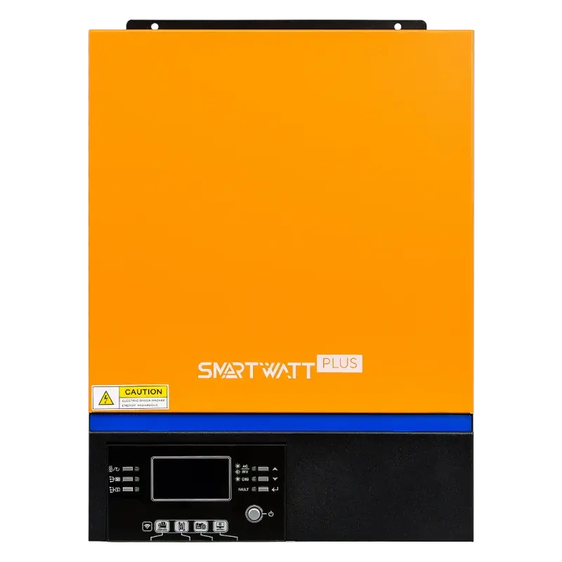 Многофункциональный инвертор SmartWatt Plus 5K служит для бесперебойного снабжения жилых домов или хозяйственных объектов качественной электроэнергией. Прибор работает в качестве преобразователя постоянного тока, поступающего от солнечных батарей, в переменный ток с идеальной синусоидой для питания потребителей мощностью до 5000 Вт. Устройство может также подключаться к бытовой электросети напряжением 220 В или генератору. Номинальное напряжение АКБ составляет 48 В. Инвертор снабжен встроенным модулем связи Wi-Fi для дистанционного мониторинга с мобильного устройства или ПК.