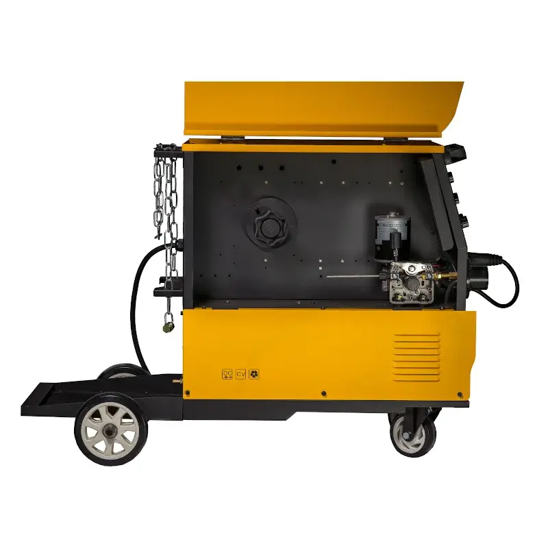 Специальное исполнение металлического корпуса с тележкой с возможностью легкой транспортировки аппарата и балона с защитным газом по цеху или сварочному участку.