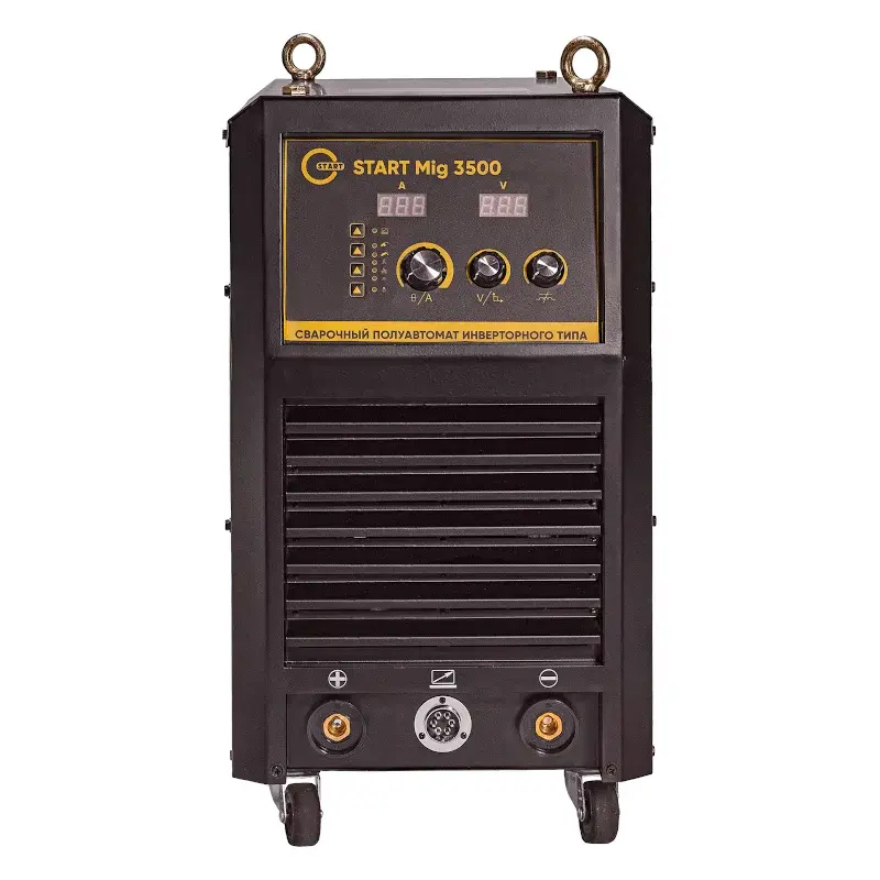 START MigLine 3500 - промышленный сварочный полуавтомат инверторного типа, источник с отдельным подающим механизмом. В стандартную комплектацию данного сварочного полуавтомата входит 5 - метровый кабель управления между источником и отдельным подающим механизмом.