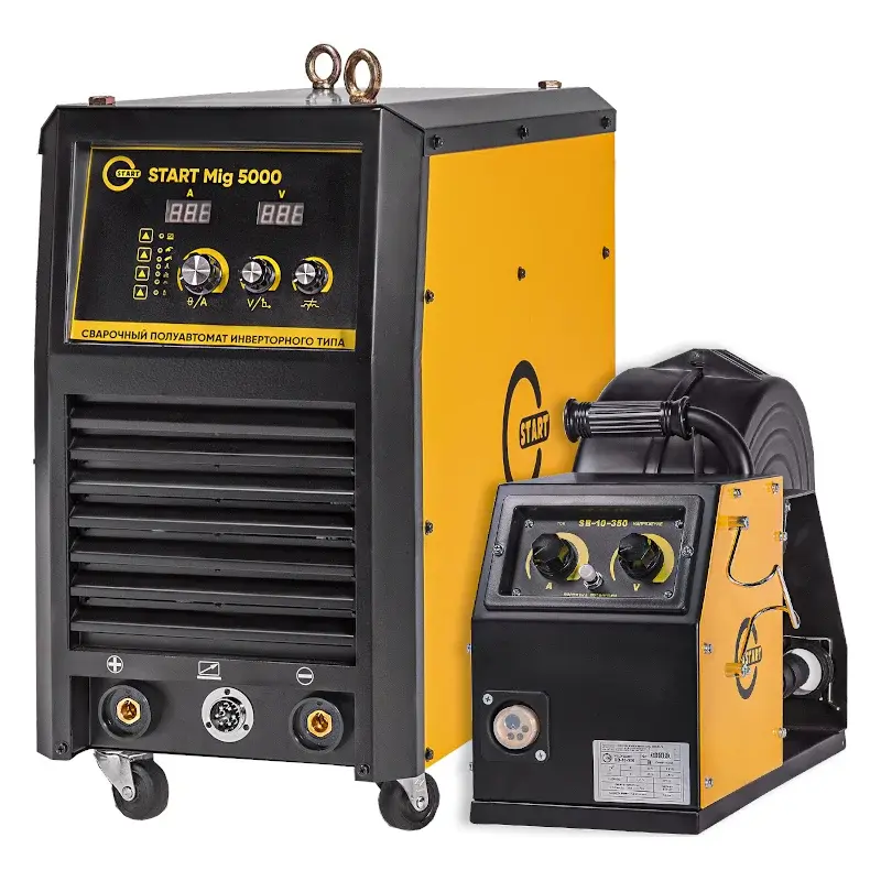 START MigLine 5000 - промышленный сварочный полуавтомат инверторного типа, источник с отдельным подающим механизмом. В стандартную комплектацию данного сварочного полуавтомата входит 5 - метровый кабель управления между источником и отдельным подающим механизмом.