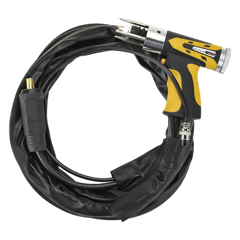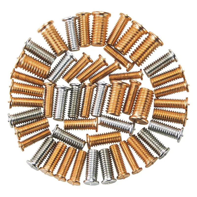 Контактный способ приварки применяется предпочтительно при работе с нержавеющей сталью, а также с нелегированными и оцинкованными металлами (15µ). При этом шпилька вставляется в крепеж и прижимается к рабочей детали пистолетом или автоматической сварочной головкой. Под действием пружины сварочного пистолета привариваемый метиз плотно прижимается к поверхности заготовки с характерным для конденсаторной сварки зарядом на кончике метиза. Нажатием кнопки на пистолете накопленная конденсаторная энергия высвобождается через тиристор. Зажженный кончик шпильки нагревается до степени плавления. При этом возникающая электрическая дуга полностью приплавляет кончик шпильки к детали.