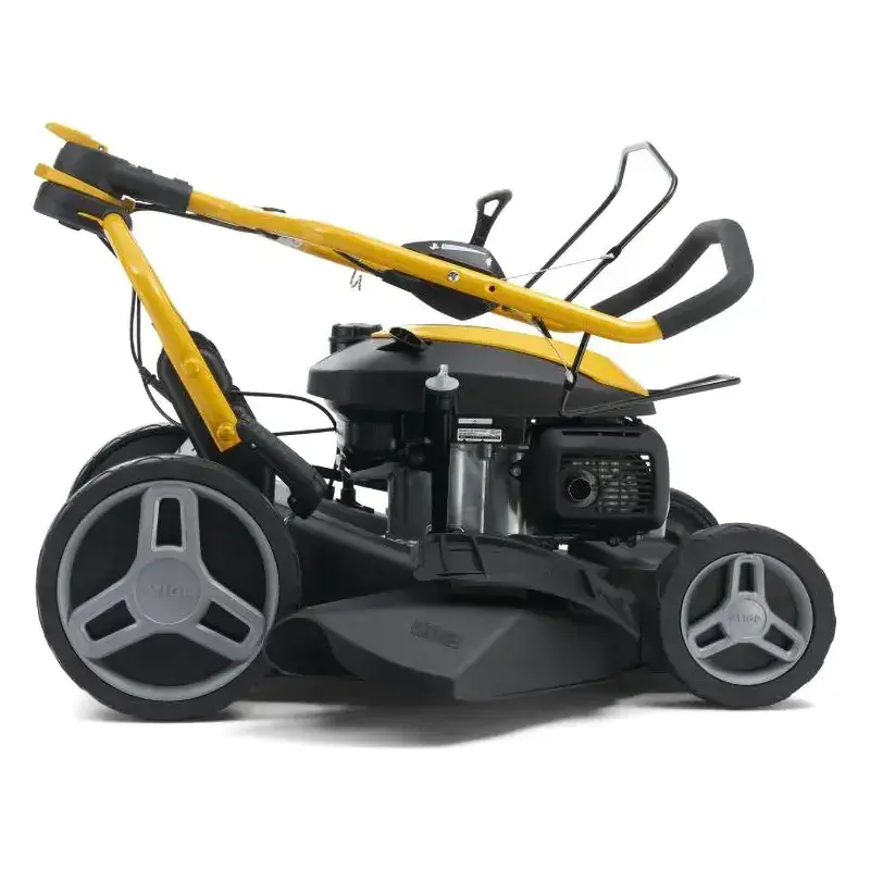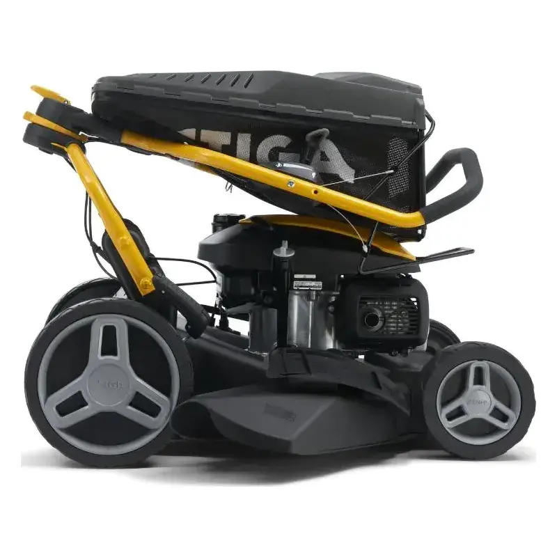 Индикатор на травосборнике показывает, когда нужно остановиться для его опорожнения. Мягкая накладка снижает передачу вибраций на руки. Газонокосилка Stiga Combi 753 V оснащена колесами на подшипниках с плавным ходом. За счет разного диаметра передней и задней колесной пары машина легко преодолевает неровности.