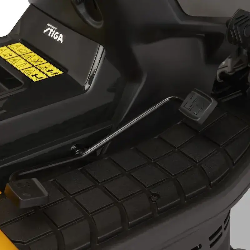 Дека шириной 84 см оснащен двумя ножами и имеет 7 положений высоты кошения в диапазоне от 25 до 80 мм, а также удобную электромагнитную систему сцепления ножей, приводимую в действие кнопкой. Садовый трактор Estate 384 M H оснащен задним травосборником на 240 литров, а также может использоваться с механизмом мульчирования STIGA Multiclip. Эргономичный руль STIGA и регулируемое сиденье STIGA Classic с высокой спинкой делают вождение комфортным.