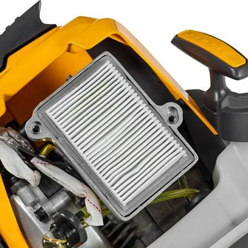 - Кусторез имеет рукоятки мотоциклетного типа, обеспечивающие надежный хват и полный контроль для безопасной эксплуатации.