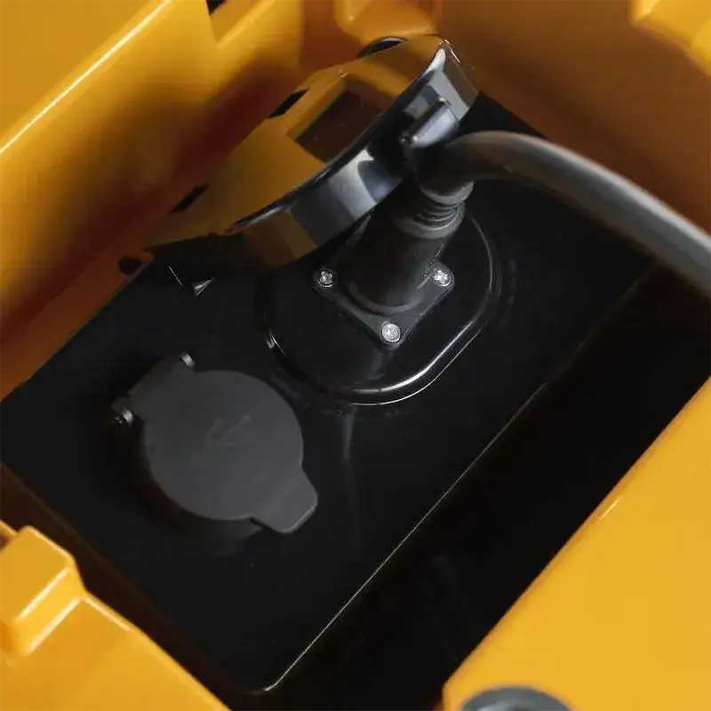 Сила и длительность заряда аккумулятора позволяют непрерывно работать до 45 минут. Простая приборная панель содержит индикатор уровня заряда батареи и кнопку быстрого старта. Трансмиссионный двигатель 1,2кВт позволяет разгоняться до 9,5км/ч, а двигатели режущих ножей (суммарная мощность 3кВт) работают без ремней, шкифов и дорогого обслуживания.