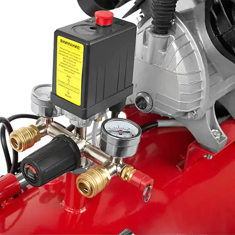2-х цилиндровый мотор V-TYPE в сочетании с большим ресивером на 100 литров обеспечивает высокую производительность компрессора. 2 быстросъемных соединителя RAPID позволяют подключать одновременно двух потребителей, легко и быстро менять пневмо оснастку. Реле и регулятор давления с манометрами на входе и на выходе позволяют создавать и контролировать требуемое давление. Защита от перегрева и Защита от перегрузки предохраняют компрессор от критических состояний. Порошковая покраска ресивера - высокая антикоррозийная стойкость, стойкость к перепадам температуры, механическим воздействиям, ультрафиалету (почти не выцветает), декоративность.