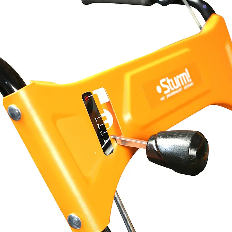 - Удобный рычаг управления желобом снегоотбрасывателя;