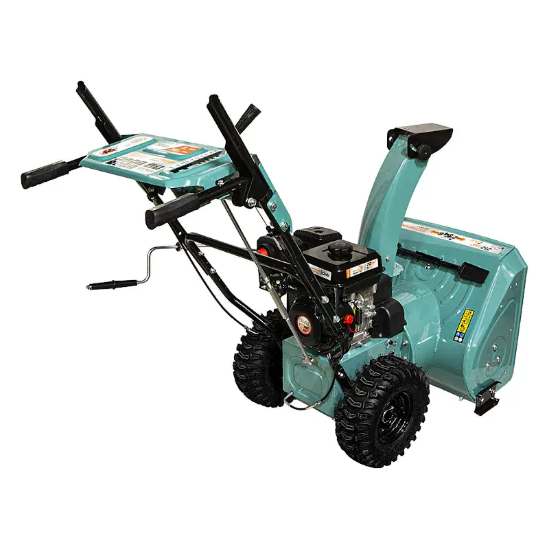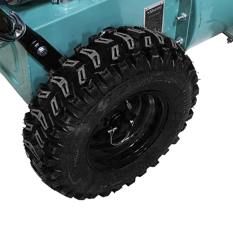 Широкие колеса с развитым анти-снежным протектором позволяют уверенно двигаться по рыхлому снегу. Широкий набор скоростей: 6 вперед и 2 назад для настройки оптимальной скорости движения снегоуборщика.