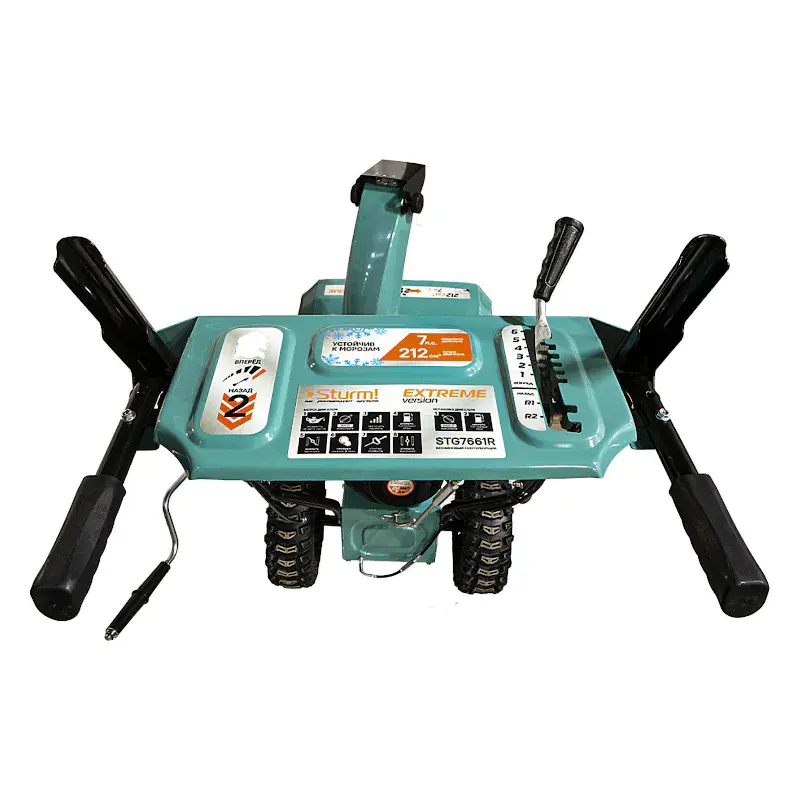 Бензиновый снегоуборщик Sturm! STG7661R - это самоходная двухступенчатая снегоуборочная машина оснащена зимним вариантом надежного четырехтактного бензинового двигателя модели 170F. Система управления двигателем обеспечивает его работу в оптимальном диапазоне максимального крутящего момента, что даёт хорошую энерговооружённость для выполнения тяжёлых работ.
