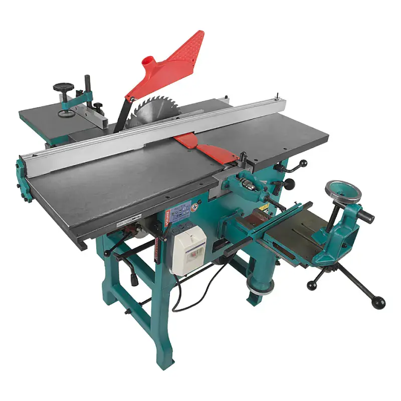 Станок позволяет производить: строгание, фугование, рейсмусование, распиловку в размер с параллельной направляющей и угловым упором для распила под 45 градусов, сверление, фрезерование и шпунтование, заточку режущего инструмента (включая пильные диски) в одиночку заменяя 7 специализированных станков, экономя Ваше время и ресурсы.