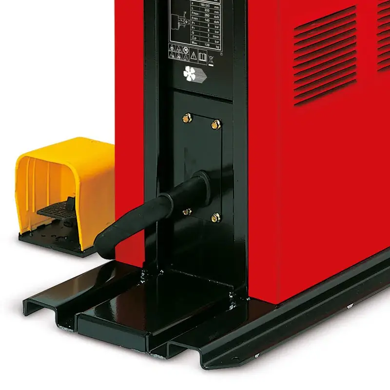 Сварочный аппарат работает в непрерывном импульсном режиме, где ток настраивается до 16400 А. Помимо этого, также можно самостоятельно регулировать силу сжатия электродов и длительность сварки.