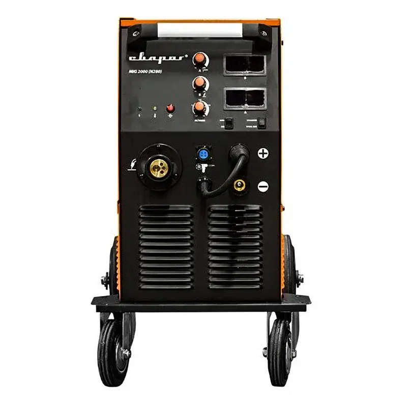 Сварочный инвертор MIG 2000 (N280) предназначен для полуавтоматической сварки в среде защитного газа (MIG/MAG), сварки порошковой проволокой (FCAW), а так же для ручной дуговой сварки покрытым электродом (MMA). MIG-MAG инвертор размещается на тележке с поворотными колесами со специальной площадкой для крепления газового баллона.