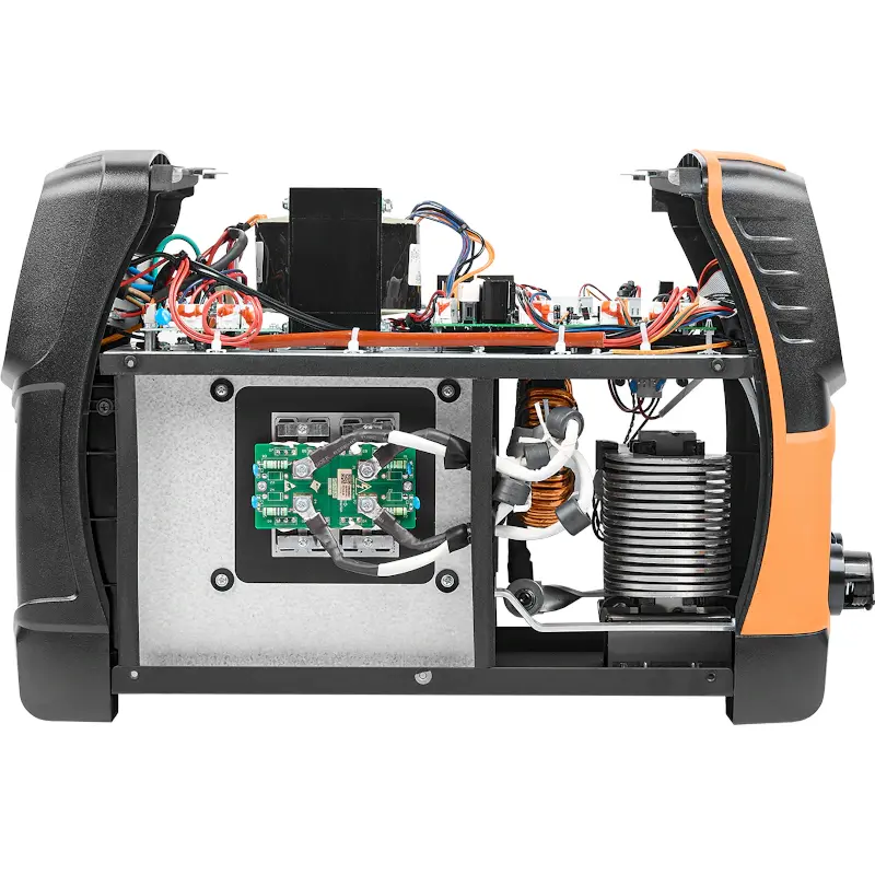 При производстве оборудования применяется технология поверхностного монтажа SMT. Печатные платы покрываются лаком, который защищает их от пыли и повышенной влажности. Прочный корпус из долговечных материалов рассчитан на эксплуатацию сварочного аппарата Сварог PRO SMART MIG 350 на стройплощадке или производстве.
