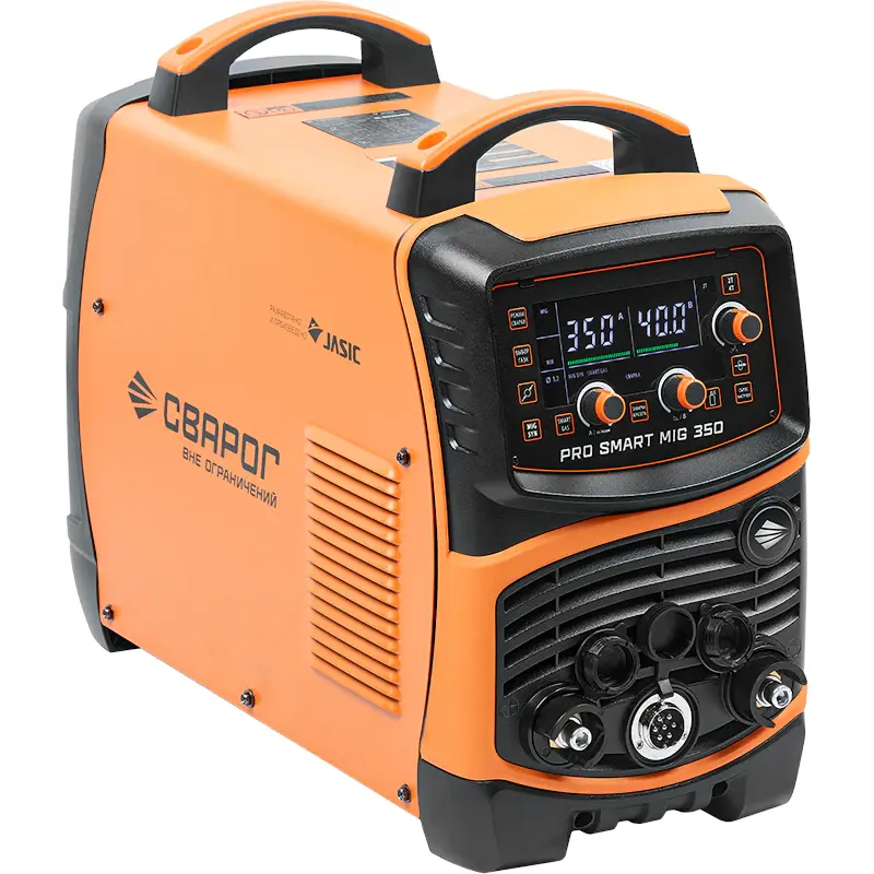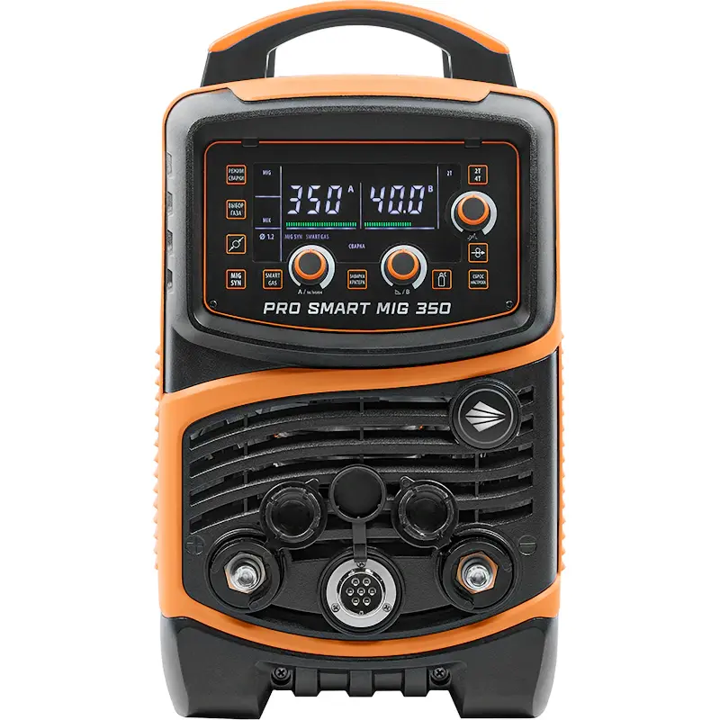 Сварочный инвертор Сварог PRO SMART MIG 350 максимальной мощностью 13,9 кВт — профессиональное оборудование для сварки алюминия, меди, титана, нержавеющих, высоко- и низкоуглеродистых сталей и сплавов. Аппарат рассчитан на эксплуатацию в суровых условиях при температуре окружающего воздуха -30_С. В отдельный механизм подачи сварочной проволоки можно заправлять катушки весом до 20 кг. С помощью аппарата, работающего в диапазоне сварочного тока 50–350 А, можно выполнять следующие виды сварки: покрытыми электродами 1,6–6,0 мм, аргонодуговую TIG Lift, проволокой в среде защитных газов MIG/MAG с автоматической подачей. Устройство работает от трехфазной сети с питающим напряжением 380 В.
