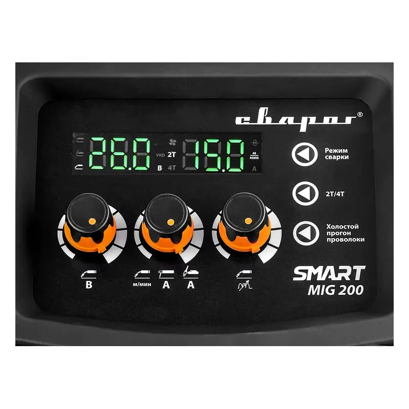 Сварочник с инверторной технологией стабильно работает при скачках и проседании напряжения до 120 В. Горелка поддерживает работу в двух- и четырехтактном режимах для удобства выполнения коротких и длинных швов. Мощные вентиляторы обеспечивают эффективное охлаждение. Сварочный аппарат Сварог REAL SMART MIG 200 BLACK N2A5 отличается небольшим весом и компактными размерами. Его удобно переносить и транспортировать благодаря наличию прочной верхней ручки.